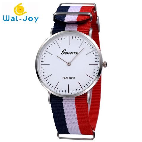 WJ-3395 China Yiwu Factory Hot Sale LOGO OEM Watch Knitted Canvas Nylon Stripe GENEVA Watches Man Promotional WristWatch