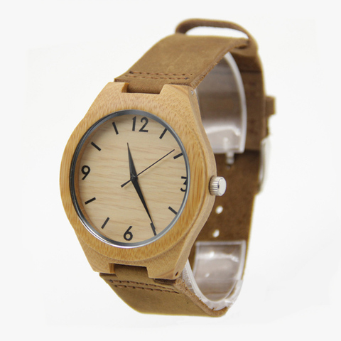 WJ-5360 Simple Wholesale Stylish Charming Genuine Leather Unisex Wooden Watches for Couple