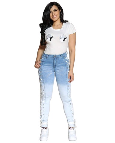 CL-555 New Arrival High Waist Fashionable High Quality Jeans Sexy Lace-up Stretch Jeans Women's Trousers Custom Denim Pants